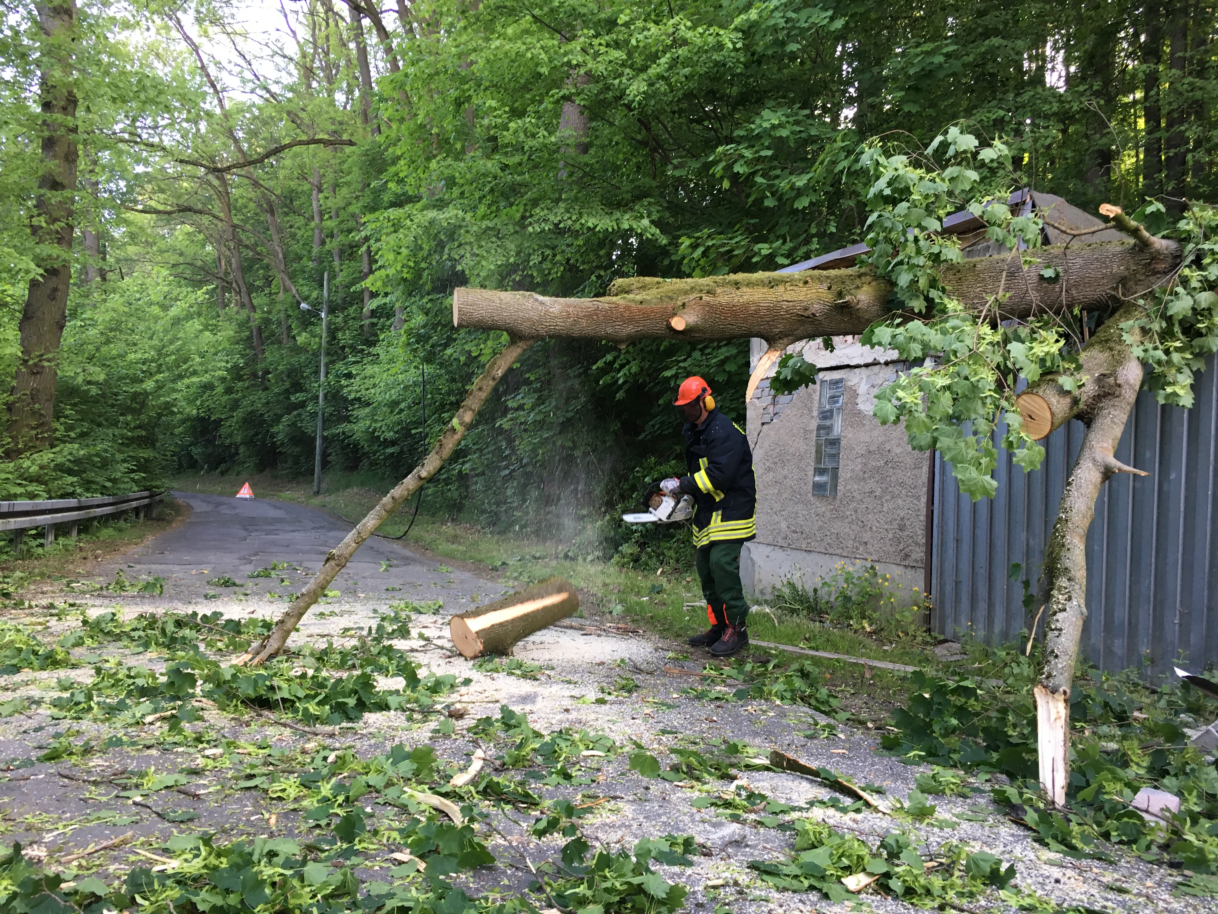 Wir wurden zu einem umgestürtzen Baum nach Waldkirchen alarmiert.